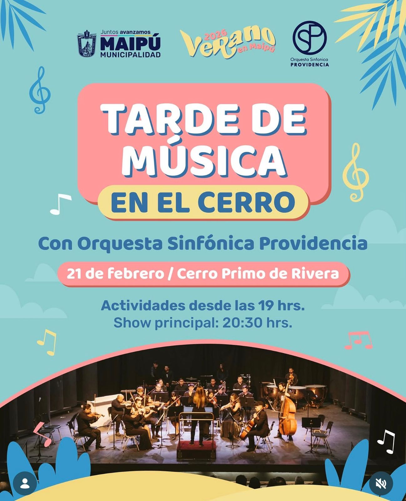 El 21 de febrero de 2026, la Orquesta Sinfónica Providencia se presentó en el Cerro Primo de Rivera, en la comuna de Maipú, con el concierto “Tarde de Música en el Cerro”.